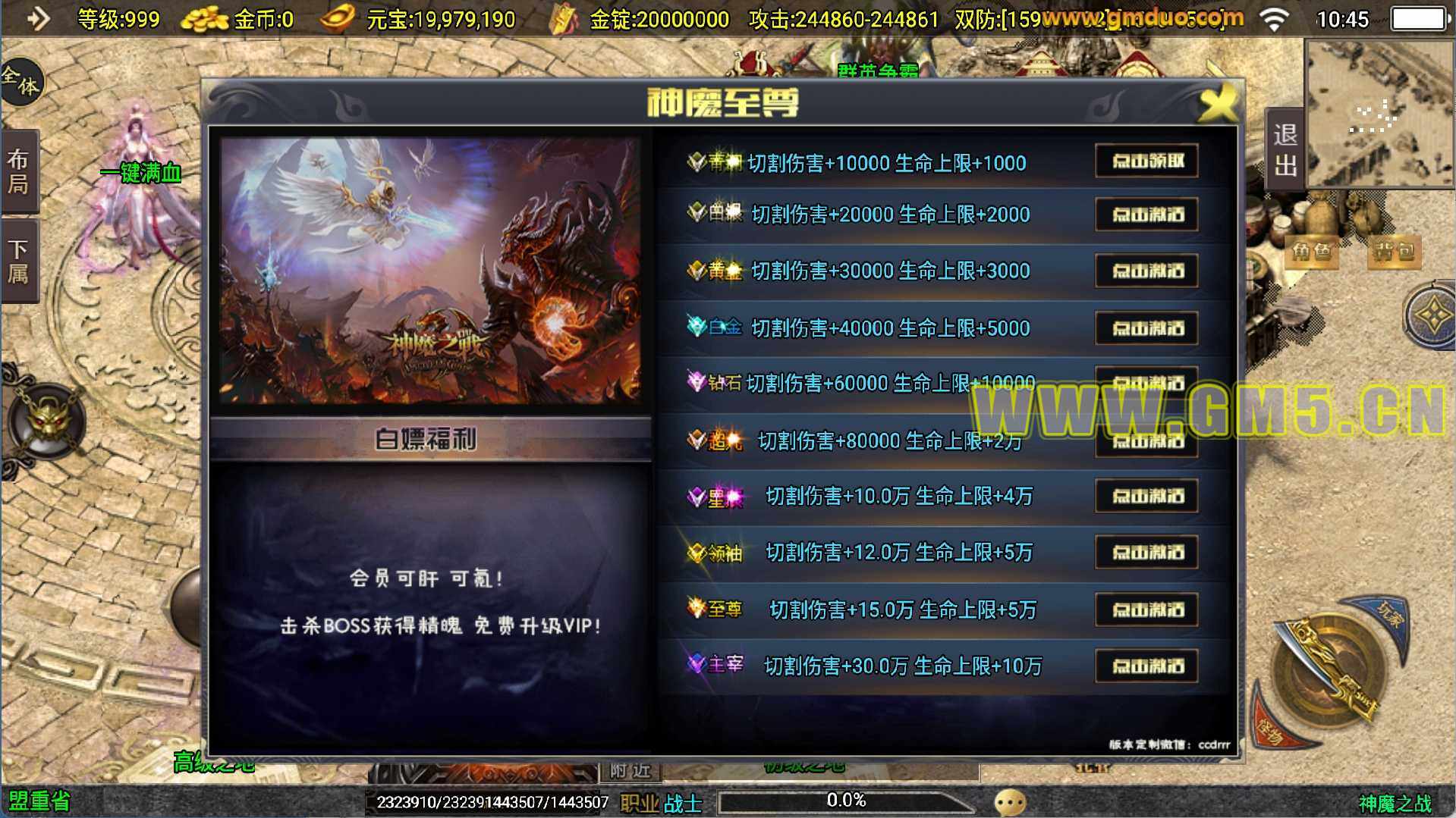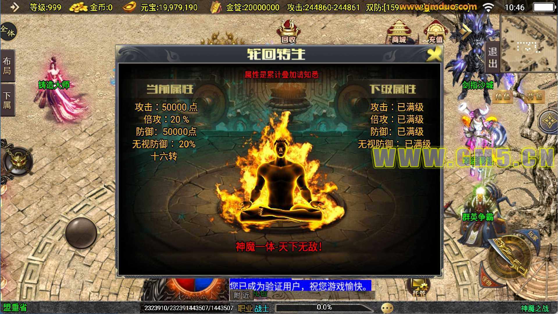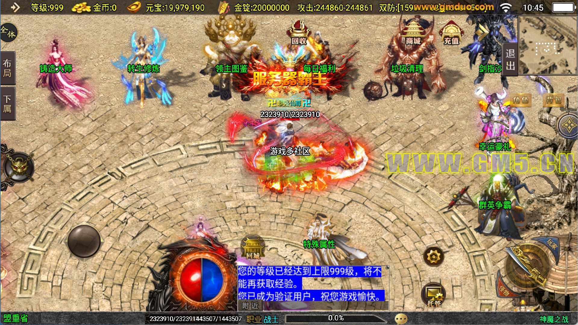 传奇手游神魔之战单职业六大陆一键端+安卓+充值后台+外网教程